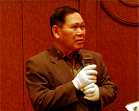 「新潟から来ました小林です。どうこう言っても,うちは「久保田」のラベル(※新潟の有名な地酒「久保田」のこと)が生活を支えていることは間違いございません。今年は,そのラベルの和紙づくりが発売以来23年目に突入します。