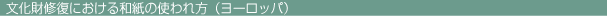 たとえば,ヨーロッパの図書館・博物館・美術館附属の修復部門で,紙に描かれた絵画,書写された文書,印刷された版画などの破損を修復するときには,薄い和紙が多用されます。ヨーロッパの紙は,和紙に比べて厚くゴワゴワしているので,その表面に薄い和紙を貼り付けても和紙の下になった文字が読めなくなることはありません。透明性においては,雁皮紙が一番高く,彩色のある本の修復には良く使われます。